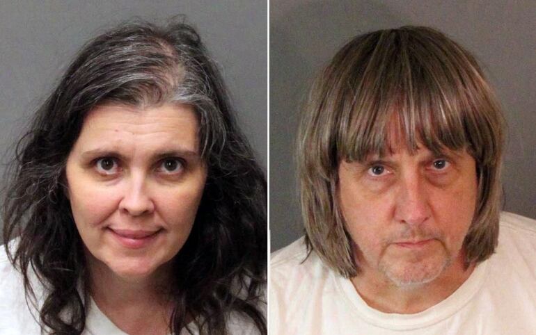 A los padres se les acusó de tortura, confinamiento y abuso infantil a 12 de sus 13 hijos biológicos, a quienes golpearon y estrangularon, además de castigarlos encadenándolos a sus camas, mantenerlos desnutridos, permitirles una ducha al año y nunca llevarlos al médico o a un odontólogo.
