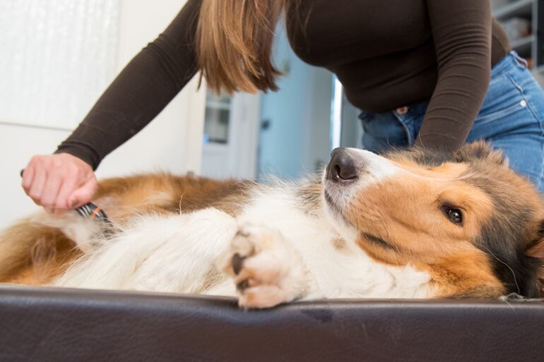A los perros con pelo más largo y subpelo, como los golden retrievers y los boyeros de Berna, basta con cepillarlos. “Sobre todo con regularidad cuando cambia el pelaje”, recomienda la veterinaria. Sus dueños solo deben echar mano a la tijera a veces en las patas.