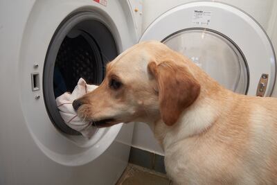 Una de las actividades más exigentes para un perro en el hogar es colocar la ropa en la lavadora, porque para ello debe meter la cabeza en la oscuridad. Si el perro reacciona con miedo, primero se practica con una maceta o un cubo oscuro, que se coloca en una silla con la abertura hacia delante. “Se introduce una golosina y el perro debe sacarla”, explica Rauch.