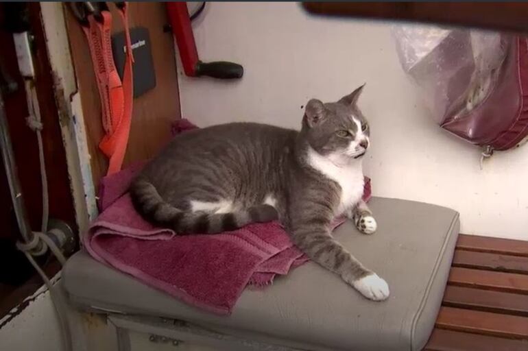 Por lo general, se puede encontrar al gato en cubierta o durmiendo una siesta en la cabina del barco. "Es muy sensato. Cuando las cosas se ponen difíciles, desaparece abajo para encontrar un lugar agradable y seguro para acurrucarse", comentó Williams.