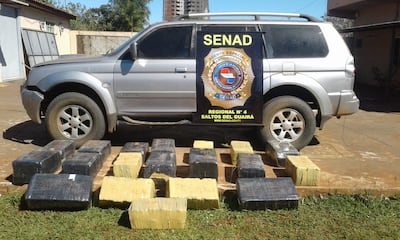 Se trata de una camioneta marca Mitsubishi, tipo Pajero Sport de color gris sin chapa, con vidrios blindados, en cuyo interior los agentes de la Senad encontraron 19 bultos y tras la verificación constataron que contenían marihuana prensada, en total unos 351 kilos.