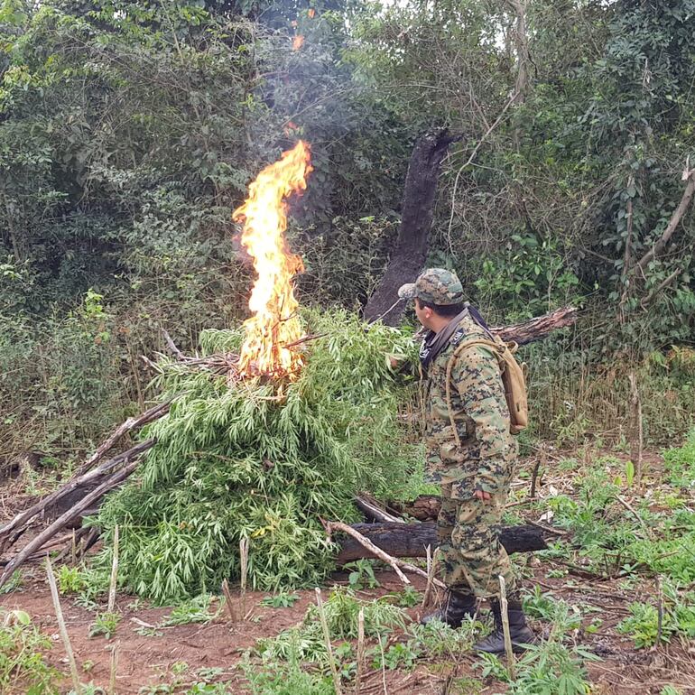 Por orden del fiscal antidrogas Armando Cantero, fueron destruidas las diez hectáreas de cultivo. La droga luego fue incinerada con todos los otros elementos hallados en el lugar.
