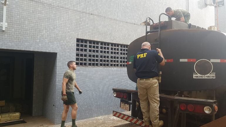 El enorme cargamento era transportado en un camión cisterna con chapa CCF 629, de Paraguay. El ahora detenido dijo a los intervinientes que el camión estaba vacío y que iba cargarlo con asfalto en la ciudad de Curitiba.