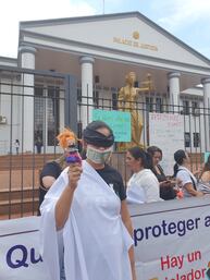Los manifestantes colocaron carteles con frases de niños víctimas de abuso en la muralla de la sede judicial, además de pasacalles con las fotos de los jueces Aniceto Amarilla, Isidro González y Miryan Meza de López. Una de las manifestantes se vistió de la diosa Astrea y, en vez de la espada, utilizó una muñeca para simbolizar los abusos contra los niños. Además, se cubrió la boca con un billete de G. 100.000 para repudiar las supuestas coimas que se hacen para dictar resoluciones.