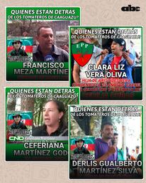 El secretario privado adjunto de la Secretaria Privada del presidente Mario Abdo Benítez, Luis Andrés Arévalo Cuellar (46), difundió este domingo entre los periodistas que cubren el área de Presidencia cuatro flyers -o volantes digitales- que llevaban por titulo unificado “QUIÉNES ESTÁN DETRÁS DE LOS TOMATEROS DE CAAGUAZU?”. En cada uno de ellos se incluye el nombre de un presunto dirigente campesino, su fotografía, y un texto que describe si se trata de la hija, hermano, tía o primo de la epepista Magna Meza, o del condenado por el secuestro y asesinato de Ceclilia Cubas, Arístides Vera.