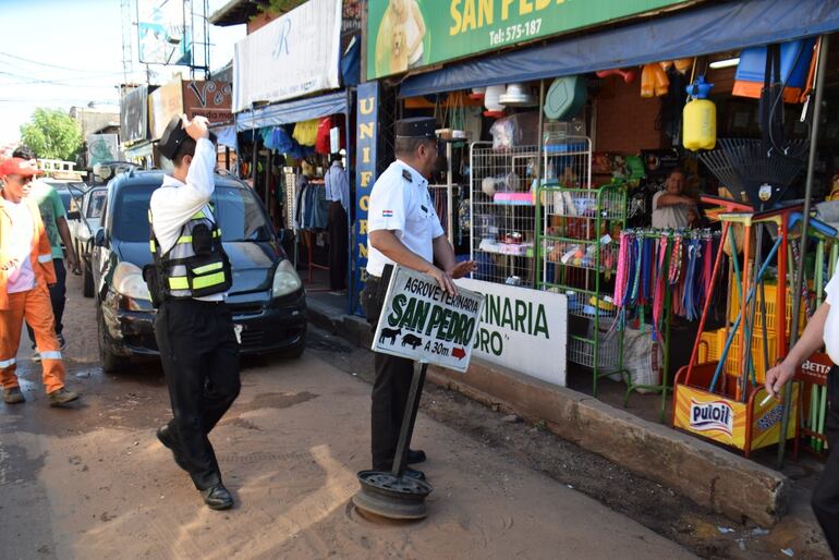 El trabajo se inició el jueves, atendiendo a la gran cantidad de compradores que se tiene en esta época en la zona comercial de San Lorenzo, donde ya no tienen espacios para estacionar y poder hacer sus compras, a puertas de la Nochebuena.