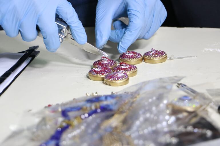 De los adornos, los peritos extrajeron cocaína. La Senad dio a conocer que, junto con la bisutería, pesó 732 gramos.