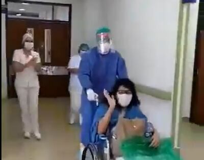 El feliz momento del alta de la paciente fue registrado en un vídeo que fue compartido en las redes sociales de la prevional.