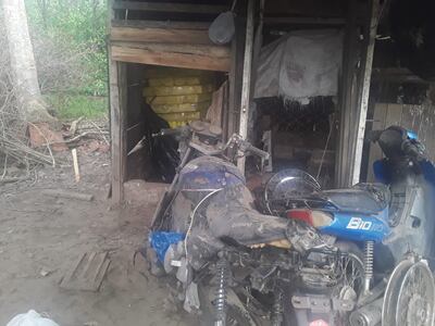 Durante el allanamiento se detectó una importante cantidad de presunta marihuana prensada que se encontraba guardada en un precario depósito. También se encontraron parte de motocicletas desarmadas, una desmalezadora, un machetillo, un aparato celular y cartuchos de balines.