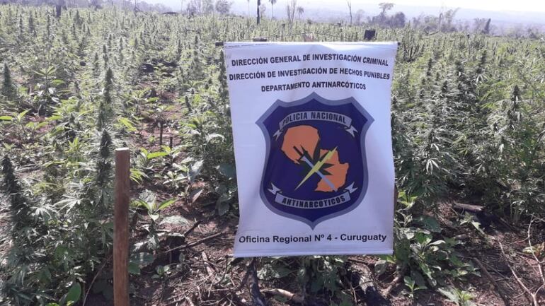 La comitiva estuvo integrada por personal del departamento antinarcóticos de la Policía Nacional, base Curuguaty y Salto del Guairá, que junto a los representantes del Ministerio Público debieron caminar por más de 2 horas, para finalmente llegar a la zona de producción.