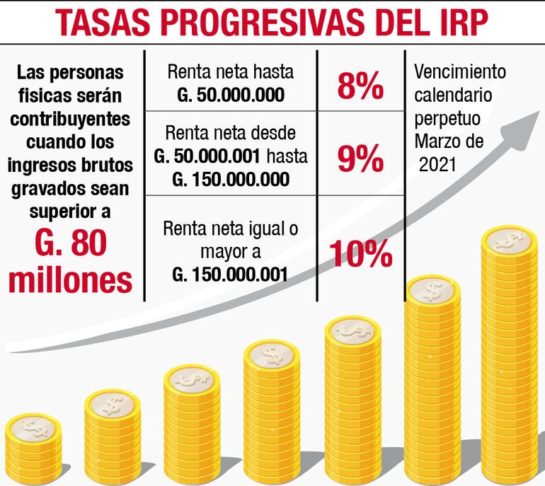 El informe dice que el rango de incidencia para ser contribuyentes del IRP asciende a G. 80 millones para servicios personales y G. 20 millones para rentas de capital.