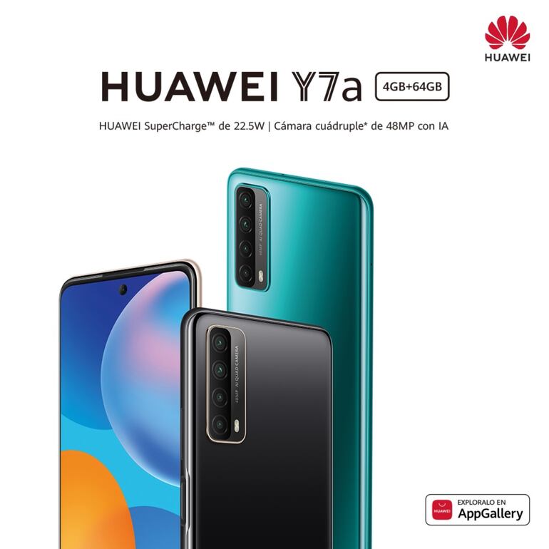 El Huawei Y7a cuenta con una pantalla grande que logra una visualización inmersiva, una batería de larga duración y cámara más inteligente.
