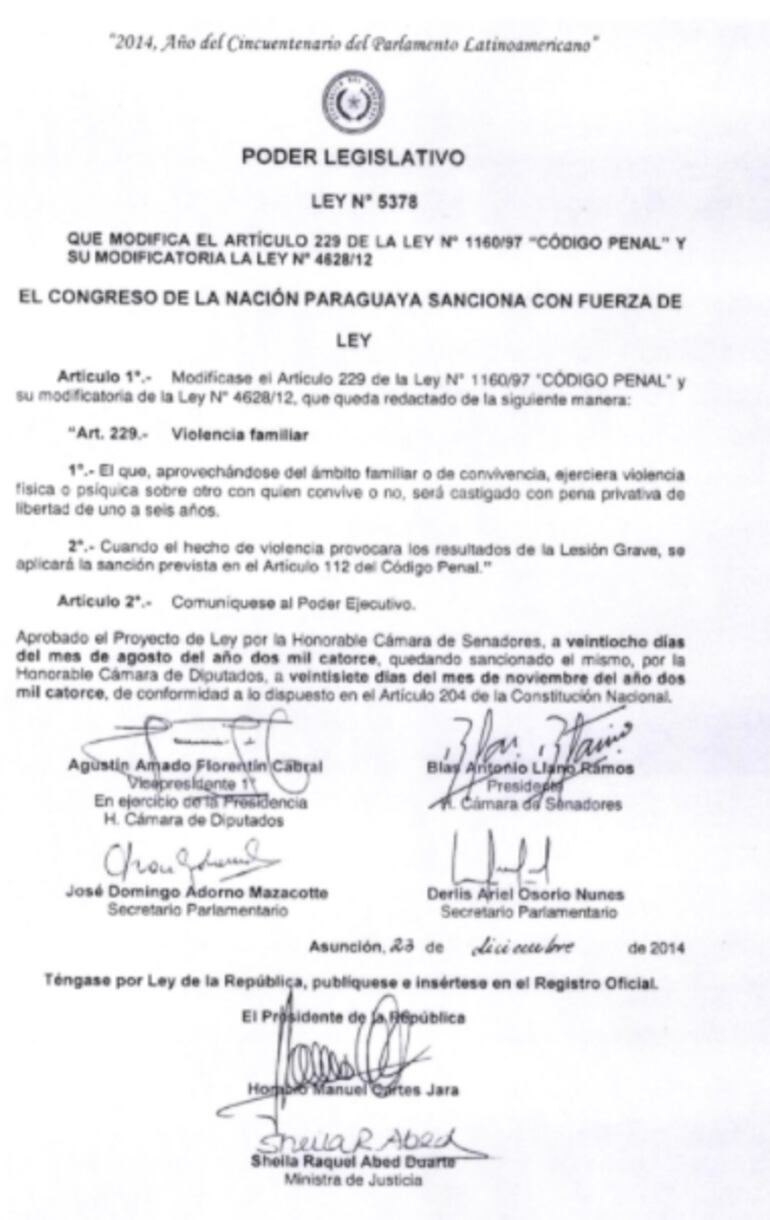 En la tarde de hoy la Cámara de Senadores en su sesión ordinaria trató el proyecto de ley que pretende modificar el Artículo 229 del Código Penal sobre violencia familiar.