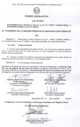 El senador Pedro Santacruz propuso de que el Art. 229 incluya que si la víctima es una mujer se remita a los términos de la ley Nº 5.777/16 de Protección Integral a las Mujeres, a lo que sus pares como la senadora Georgia Arrúa, Enrique Riera y Stephan Rassmussen concordaron que podría prestarse a confusión y un conflicto entre ambas leyes.