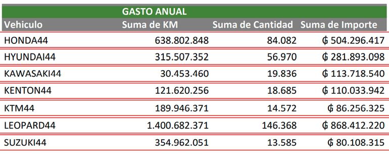 Esa carpeta ya incluía planillas con el detalle de los móviles policiales (motos, camionetas y camiones) que mayor cantidad de combustible supuestamente recibieron durante el año 2020 y la nómina de los supuestos choferes que más combustible cargaron en el mismo periodo. En ambos campos, los montos son millonarios y prácticamente imposibles de que sean ciertos.