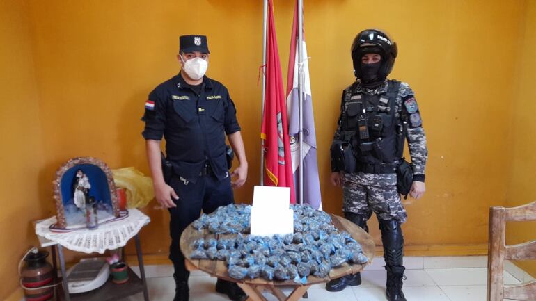 Según el informe, se incautaron de dos mochilas, uno de color verde y otro de color negro, cuyo interior contenía sustancia verdosa envuelto en bolsitas de polietileno arrojando positivo a supuesta Marihuana, reportó el periodista de ABC Rodolfo López.