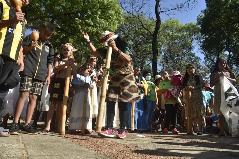 Los miembros de la Articulación Nacional Indígena por una Vida Digna (Anivid) se movilizan en Asunción y otros puntos del país para exigir -entre otras cosas- la conformación de una mesa de trabajo con los tres poderes del Estado.