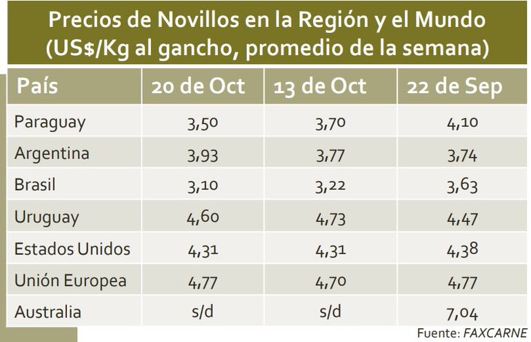 Así fue que a principios de este mes, el precio del ganado registró una brusca caída, de US$ 4,15 por kilogramo al gancho descendió a US$ 3,65 por kilogramo al gancho, luego de más de nueve meses de sostenida suba, y esta semana volvió a bajar, quedando en US$ 3,5 por kilogramo, acorde con los datos que maneja la Asociación Rural del Paraguay (ARP).