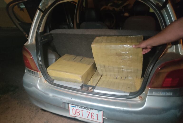 Posteriormente, se hallaron panes de marihuana en la parte posterior del rodado, totalizando 125 kilos de la droga. Además, se halló dentro del vehículo Toyota tipo Vitz, con chapa OBT 761, una habilitación municipal de Curuguaty a nombre de Gustavo Ramón García González, dueño del auto, y la cédula de un menor.