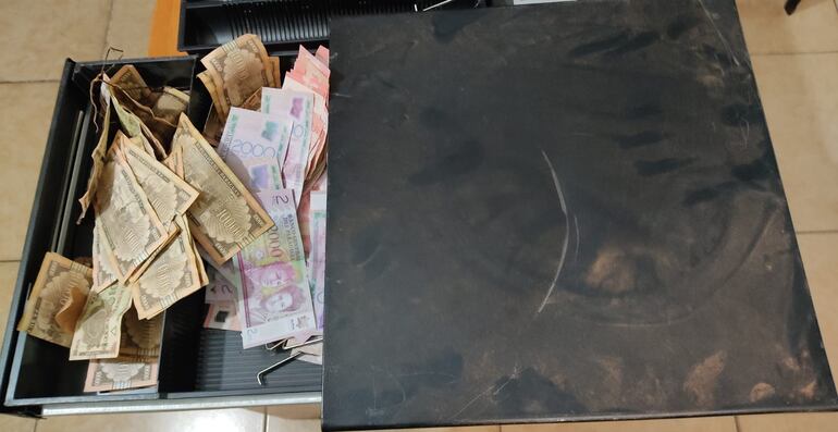 Se logró además la incautación de una caja registradora con billetes de baja denominación; 22.000 gs en billetes de 2.000 gs; 140.000 gs en billetes de 5.000 gs; 300.000 gs en billetes de 10.000 gs; una moneda de 1.000 gs y dos monedas de 500; habiendo en total el monto de 464.000 gs; una caja de cartón que contiene 80 cigarrillos; y una motocicleta de la marca Kenton, color Rojo, sin chapa, reportó el periodista de ABC Rodolfo López.