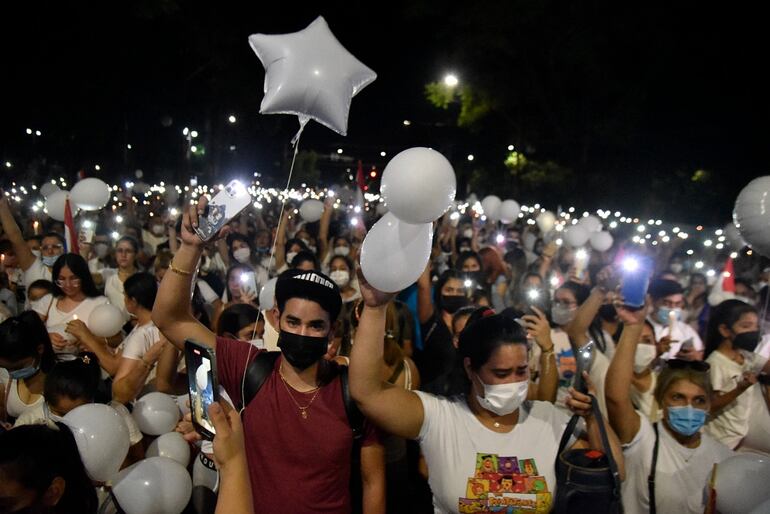 Cientos de personas se reunieron en la avenida Mariscal López, frente a Mburuvicha Róga, para en forma pacífica, exigir justicia por la muerte de la influencer Vita Aranda, quien fue asesinado de un tiro en la cabeza en un atentado entre narcos el domingo pasado en San Bernardino.