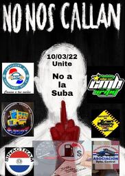 Sinactram (Sindicato Nacional de Trabajadores en Moto), ACP (Asociación de Conductores del Paraguay), Atepy (Asociación de Transporte Escolar del Paraguay), CMB (Club Mercedes Benz), Asociación de grueros del Paraguay, Asociación de volqueteros unidos de Central y taxistas independientes son los gremios de trabajadores que encabezan y convocan a la marcha como forma de protesta contra la suba del precio del combustible.