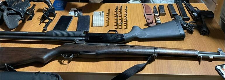 Armas incautadas durante el allanamiento en la vivienda de Celso Bobadilla, procesado por violencia familiar.