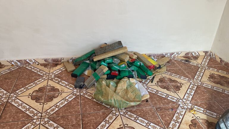 Durante la revisión del inmueble, en una de las habitaciones se encontraron cuatro bolsas cargadas de marihuana. Se convocó al personal de Antinarcóticos para el análisis primario de campo y el resultado arrojó positivo. Se incautó el vehículo además de la droga que totalizó 38 panes.
