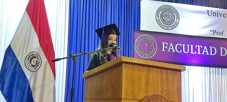 Un contundente discurso fue el que dio Giuliana Cattivelli durante al ceremonia de graduación de la promoción de médicos de la Universidad Nacional de Asunción 2021.