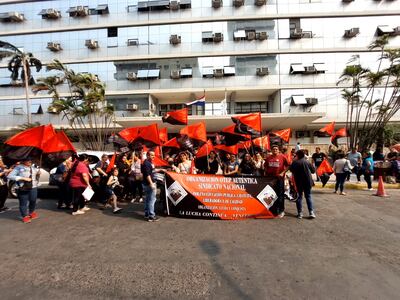 Este jueves por la mañana tuvo lugar frente a la sede de la Caja Fiscal del Instituto de Previsión Social (IPS), en Asunción, una manifestación de miembros del sindicato de docentes Organización de Trabajadores de la Educación del Paraguay Auténtica (OTEP-A).