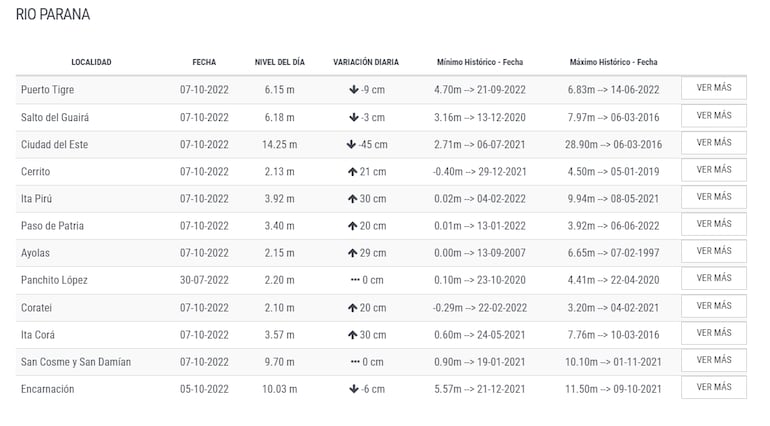 Por otra parte, Ciudad del Este, capital del departamento de Alto Paraná, registró 45 cm menos entre ayer y hoy.