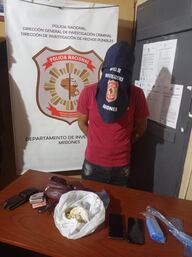 A la hora de su detención al preguntarle sobre el dinero hurtado manifestó que dejó en la casa de un amigo, identificándole como alias Juancito. Los efectivos policiales montaron guardia en inmediaciones de la residencia mencionada y siendo a las 12:30 hs. llegaron a la vivienda dos personas de género masculino quienes fueron identificados y verificados encontrándose en su poder una bolsa de poliestireno y en su interior supuesta marihuana.