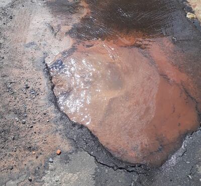 Una pérdida de agua en las calles Asunción y Paz del Chaco de Lambaré produjo un pozo y deterioro en el flamante asfalto. Essap hacete cargo.