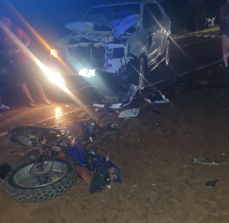 El accidente involucró a una Toyota Fortuner, con patente NBK315, conducida por Victorina Kiyomi Suematsu (50), quien salió ilesa, y a la motocicleta de los fallecidos, Hugo Ariel Pintos (40) y Dahiana Araceli Toledo Flores (22). El conductor de la moto falleció en el lugar.