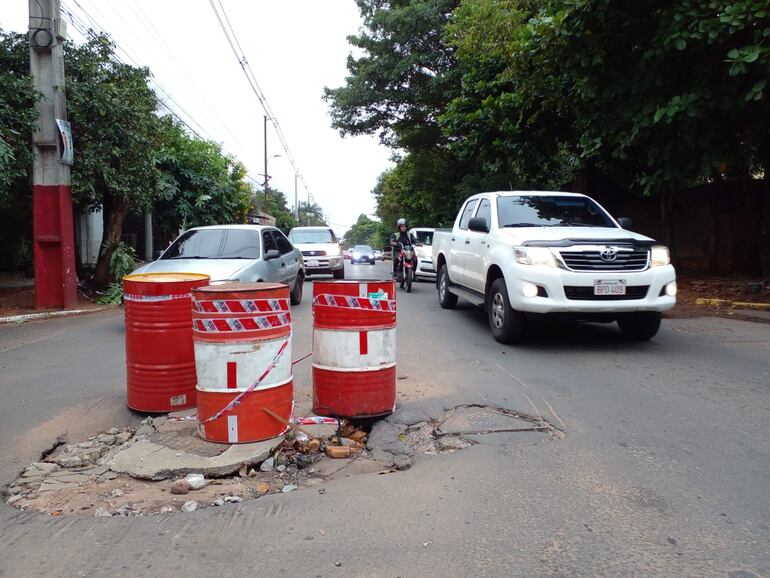 Por más de tres meses, el tránsito fue obstaculizado por los tres tambores que fueron colocados por funcionarios de la Essap. Los recipientes fueron instalados en la mitad de la boca calle para que los automovilistas no cayeran dentro de los agujeros. Sin embargo, la queja fue generalizada debido al problema que ocasionó en la vía pública.
