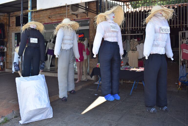Desde la semana pasada, Carmen Benítez, conocida comerciante del centro de Luque, comenzó a vender los muñecos de trapo de “Judas kái”, que serán quemados en las tradicionales fiestas de San Juan. Los primeros nombres que algunos ciudadanos propusieron para cada “Judas kái” fueron PErico, Nenecho, Huguito PoCovid y Marrito, entre otros.