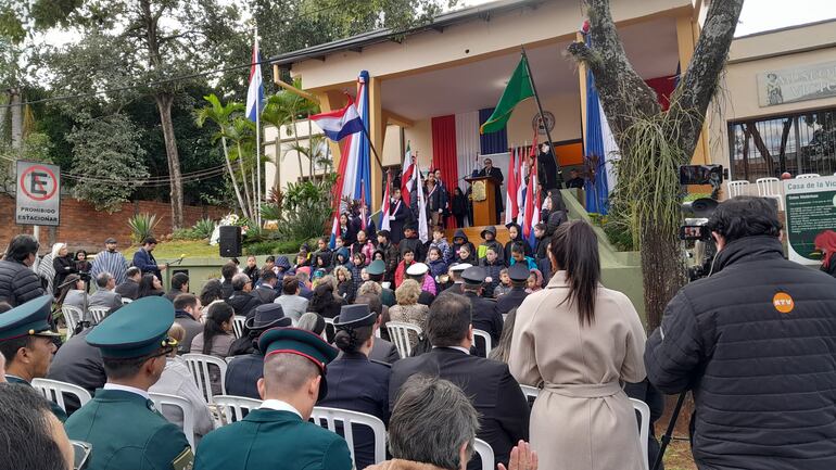 Estudiantes de la Escuela Municipal de Artes, autoridades militares, eclesiásticas y civiles dedicaron un homenaje de gratitud y reconocimiento a los héroes de la patria y a familiares de excombatientes de la Guerra del Chaco.
