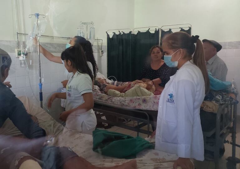 La respuesta del Hospital de Curuguaty se limita a 12 camas para internar a adultos y 12 camas para niños menores, que actualmente están cubiertas en un 100 por ciento. Inclusive, muchos enfermos son enviados a sus domicilios para seguir sus tratamientos por la incapacidad de absorber a todos los necesitados de internación.