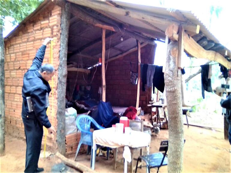 La humilde familia vive bajo un estaqueo con piso de arena, techo de eternit y un sector de la pieza necesita cerrarse con ladrillo, colocar una puerta y ventanas.