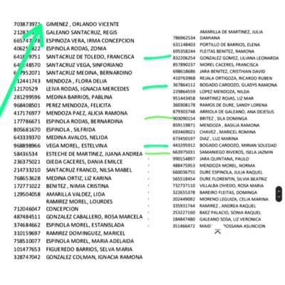 En este listado los denunciantes señalan que la ex funcionaria del Ministerio de Desarrollo Social (MSD), Dahiana Bogado, inscribió a todas sus hermanas, vecinos y hasta al funcionario municipal Orlando Giménez, quien es jornalero de la Municipalidad, como beneficiario del programa Tekoporä.
