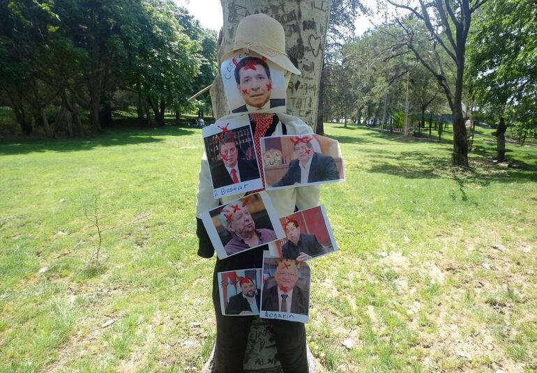 Un Judas kái no bastó, así que decidieron colocar los rostros de varios “personajes” de la política de nuestro país, para quemarlo en el día de San Juan.