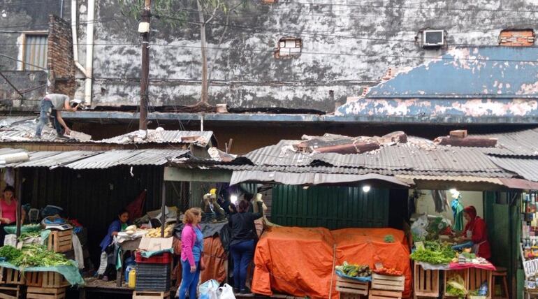 El hecho ocurrió en la tarde de hoy. Los vendedores afectados contaron que pasaron por un momento de susto al sentir que pedazos de ladrillos caían sobre el techo de chapas de sus casillas. Algunos restos incluso llegaron al suelo, situación que pudo haber causado un grave accidente tanto a las personas que trabajan en el lugar como también a los que transitan por la vereda.