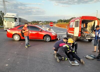 Cerca de las 17:45 de este lunes se produjo otro accidente sobre la ruta PY02, por la presunta imprudencia del conductor de un automóvil de la marca Toyota modelo Premio, que estaba al mando de Miguel Darío Perez González, de 44 años de edad, domiciliado en el barrio San Antonio.