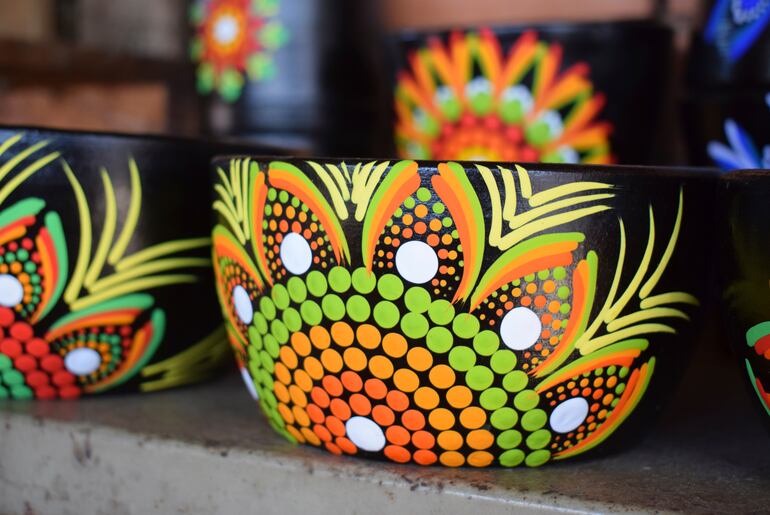 Pequeñas y coloridas macetas de barro hechas y pintadas a mano, portainciensos, artículos sublimados, monederos, individuales, cartucheras de tejido, planteras, espejos, cuadros, alcancías, ánforas, imágenes sacras y mucho más, son algunas de las opciones que ofrecen los artesanos de Areguá, a partir de G. 2.000, sobre las calles La Candelaria, Francisco Solano López, Ricardo Pérez y Gabriel Casaccia.