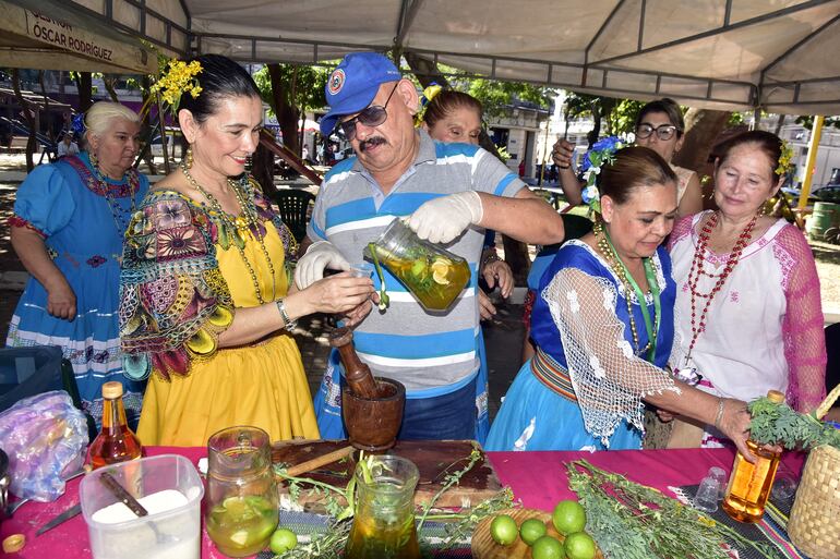 Clemente Cáceres, promotor cultural de la Dirección de Acción Cultural de la Municipalidad de Asunción, recordó que la preparación del compuesto de caña blanca, ruda y limón era utilizado como un “poderoso antigripal” desde la época de la colonia.