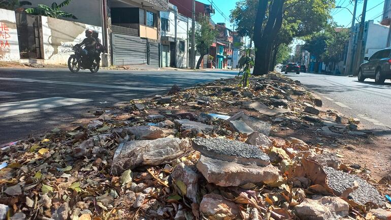 Entre las avenidas más transitadas del microcentro asunceno se encuentra Rodríguez de Francia. Sin embargo, la misma no es tenida en cuenta por el intendente Óscar “Nenecho” Rodríguez, quien mantiene su paseo central sucio y entre escombros.