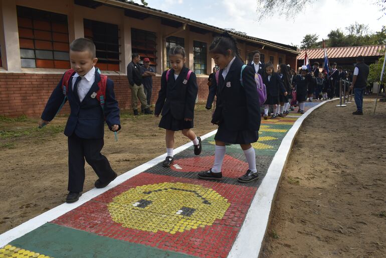 La habilitación del caminero ecológico de 80 metros de longitud construido con baldosas ecológicas (utilizando tapitas de plásticos), fue llevado adelante dentro del proyecto denominado “Reciclarte”.