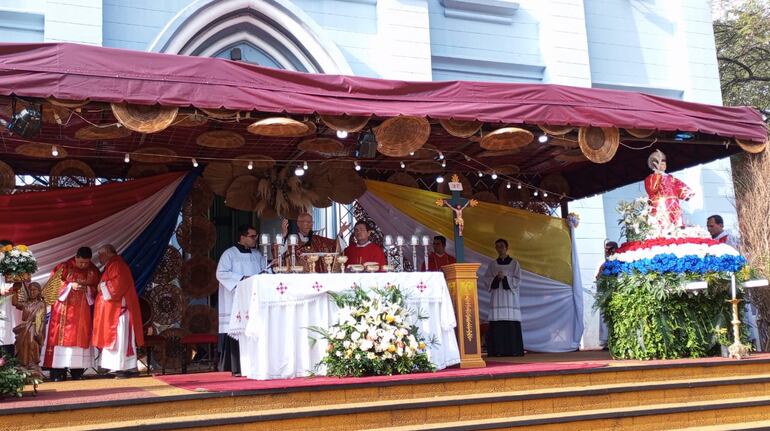 La celebración eucarística central se inició a las 08:00 en la explanada de la Catedral con masiva presencia de devotos, el Felipe Salomón (ANR), concejales y directores de la Municipalidad de San Lorenzo, entre otras autoridades.