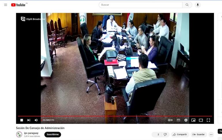 En medio de problemas de conectividad, que no dejaron seguir punto por punto el debate y la decisiones que se tomaron, inició hoy la transmisión en vivo de las sesiones del Consejo de Administración del Instituto de Previsión Social (IPS). Las sesiones -que no tienen un día ni horario fijo- se transmitirán siempre a través del canal IPS Paraguay en YouTube.