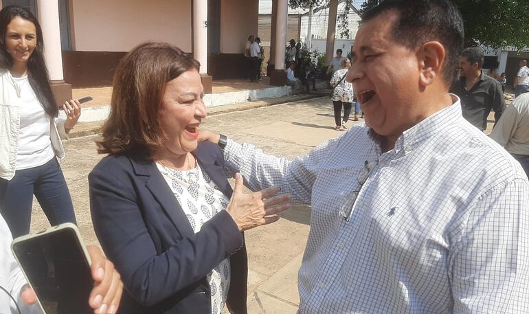 Pugnan por la intendencia: Carlos Quiñónez (por el Partido Colorado) y Yudith María Vera Bejarano (por el Frente Democrático Sampedrano, que aglutina a toda la oposición). Los candidatos se encontraron en el local de votación del colegio nacional, conversaron, se abrazaron y sostuvieron que están unidos en el sueño de un San Pedro mejor.